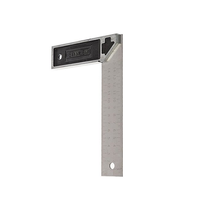 یکی از ابزارهای اندازهگیری طول و یافتن زاویهی 90 درجه گونیا است. این ابزار در بسیاری از کارگاهها مورد استفاده قرار میگیرد. گونیای فوق نیز یکی ابزارهای کارگاهی بوده که سایز کوچکی دارد. این گونیا ساختاری تمام فلزی دارد و از یک تیغه و یک دسته تشکیل شده است. طول تیغهی این گونیا حدود 18.5 سانتیمتر است و از استحکام بالایی برخوردار است. این تیغه ضخامت قابل توجهی دارد و اعداد برحسب سانتیمتر و اینچ روی آن حک شدهاند. در یک سمت تیغه میتوان مقادیر اندازهگیری شده را برحسب سانتیمتر در هر دو لبهی آن اندازهگیری کرد و در سمت دیگر تیغه در هر دو لبه مقادیر بر حسب اینچ قرار دارند. طول دستهی این ابزار اندازهگیری نیز 12.7 سانتیمتر است. این گونیا را شرکت «استنلی» تحت عنوان مدل «E-46530» به بازار عرضه میکند.