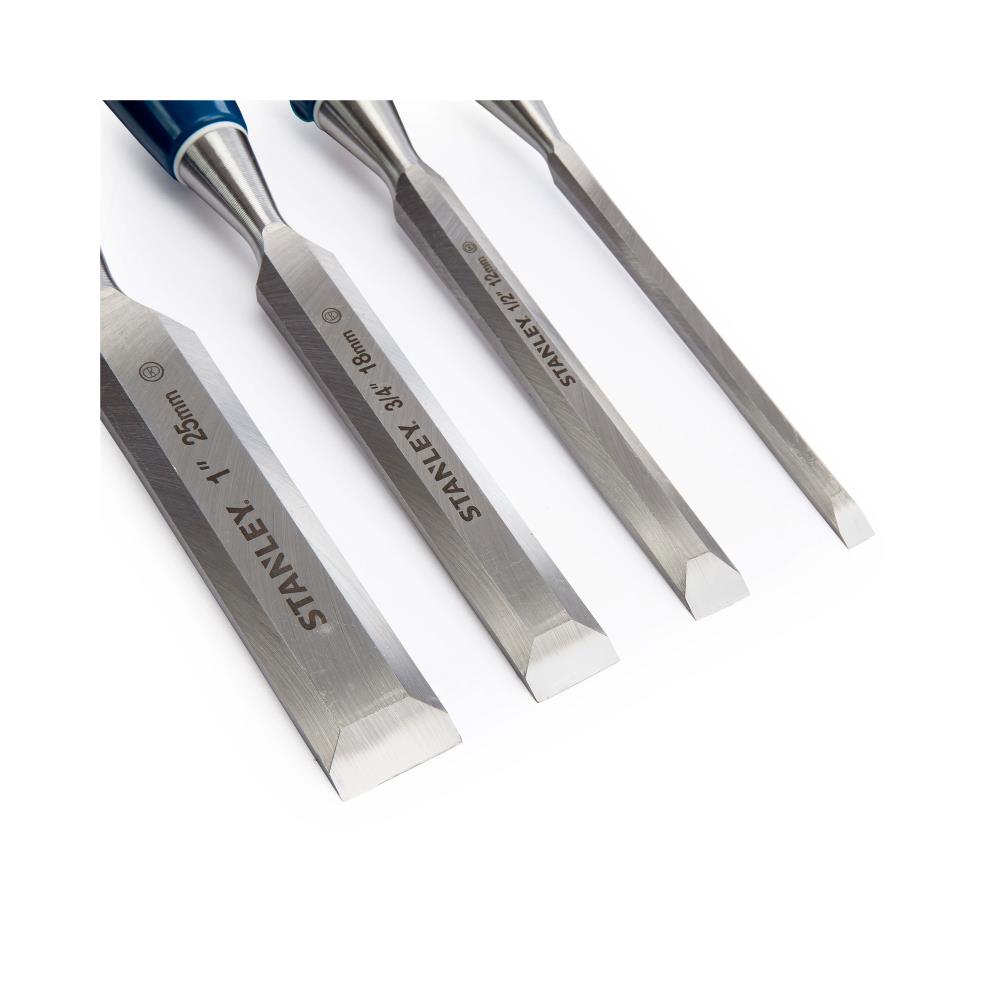 ست مغار استنلی مدل 129-16-0 شامل چهار عدد مغار 25 سانتی متری در سایزهای 6 ، 12 ، 18 و 25 میلی متر است. تیغه این مغارها از جنس فولاد با درصد کربن بالا به شیوه آهنگری (فورج) و در طی عملیات حرارت دهی کامل ساخته می شود و از طول عمر بسیار بالایی برخوردارست. همچنین روکش لاکی تیغه به خوبی از زنگ زدگی آن جلوگیری کرده و به شما امکان استفاده از این ابزار را در شرایط گوناگون می دهد.