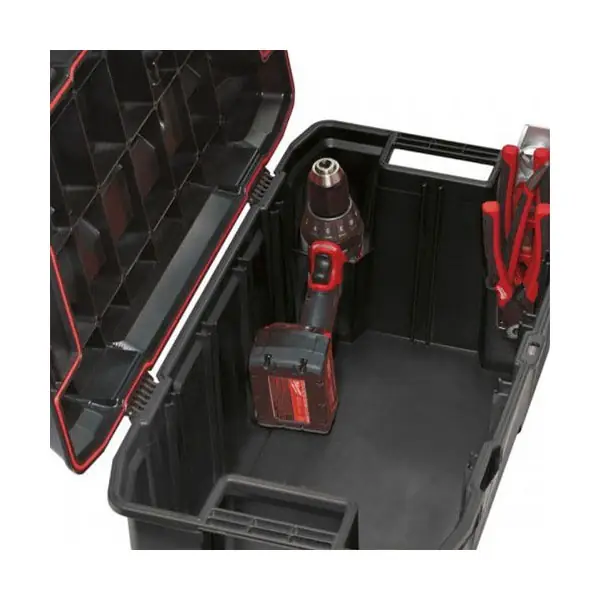 جعبه ابزار دارای فضاهای جداگانه برای سازماندهی ابزارها است. داخل جعبه شامل سینیهای قابل جداشدن و بخشهای مختلفی است که امکان تفکیک و نظمدهی به ابزارها را فراهم میآورد. این ویژگی به کاربر کمک میکند تا ابزارها را بهراحتی پیدا کند. -