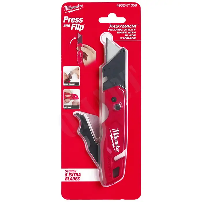 کاتر تاشو Milwaukee FASTBACK مدل 4932471358 یک ابزار حرفهای و همهکاره است که برای برش سریع، ایمن و دقیق در محیطهای صنعتی، کارگاهی و خانگی طراحی شده است. این چاقو دارای بدنه فلزی مقاوم، مکانیزم باز و بسته شدن سریع با یک دست و محفظه داخلی برای نگهداری تیغههای یدکی میباشد.