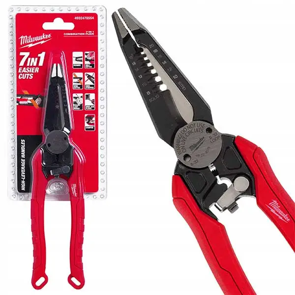 سیم چین چند کاره میلواکی مدل 4932478554 یک ابزار 7 کاره است که برای برش، لخت کردن، خم کردن و نگه داشتن سیمهای الکتریکی طراحی شده است. این انبر ترکیبی از چند ابزار در یک محصول بوده و مناسب برقکاران، تکنسینهای شبکه و افرادی که با سیم و کابل کار میکنند است.