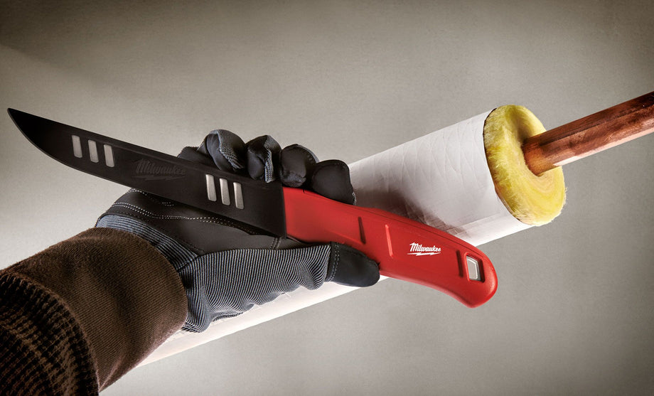 چاقو عایق بر میلواکی مدل 48-22-1921 همراه با غلاف با تیغه استیل صاف، ابزاری ایدهآل برای برش انواع عایق صنعتی، فایبرگلاس و مواد HVAC است.